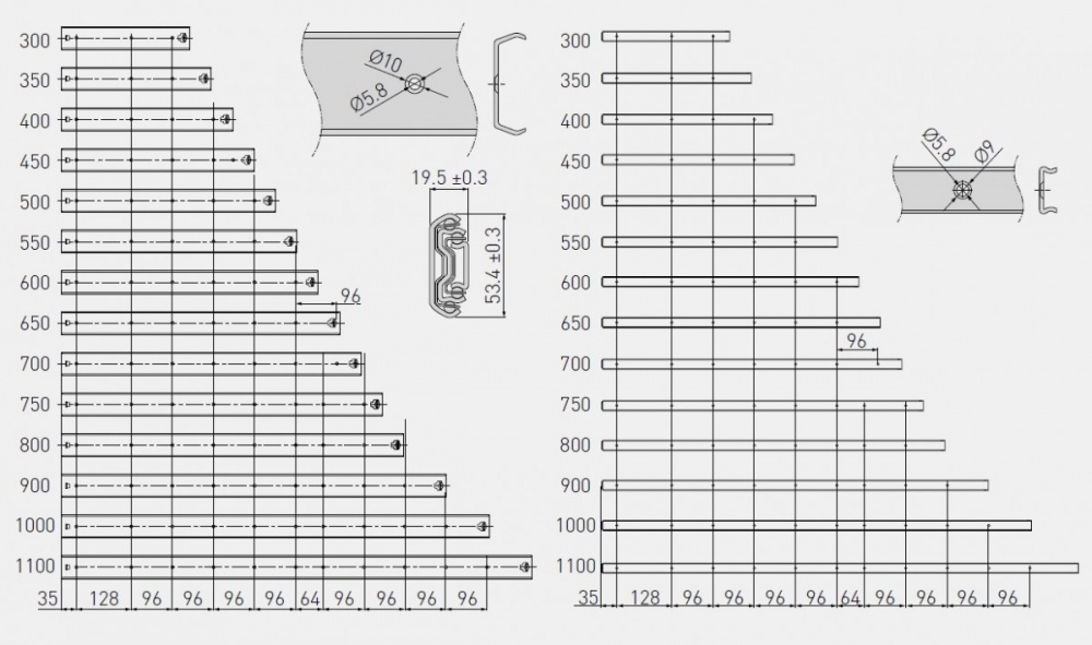 Lodīšu vadotnes L-1000mm H-53, kravnesībā 100 kg