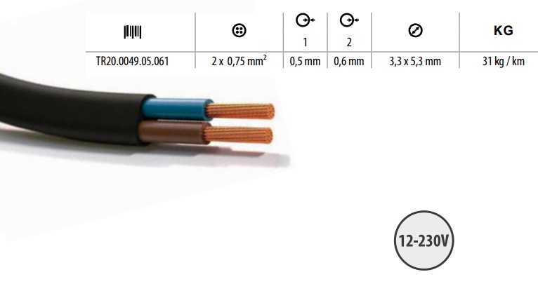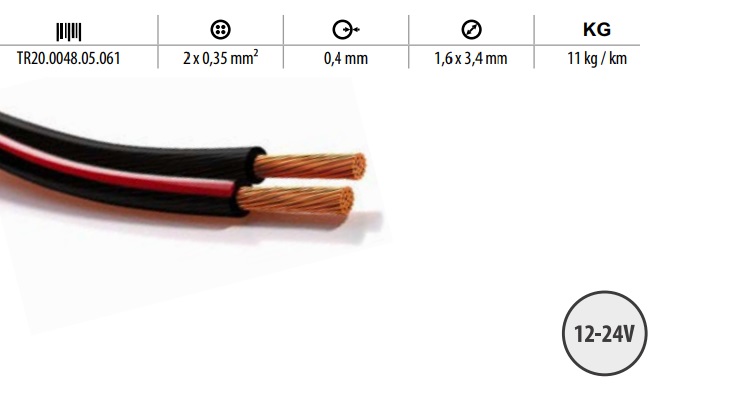 Divdzīslu kabelis 2 x 0,35 mm² TLYp 1m, ar sarkanu līniju, melns