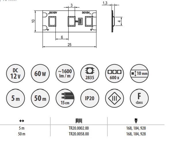 LED lenta Shine, 60W IP20 10mm, 1600lm, 12V, 5 metri, silta