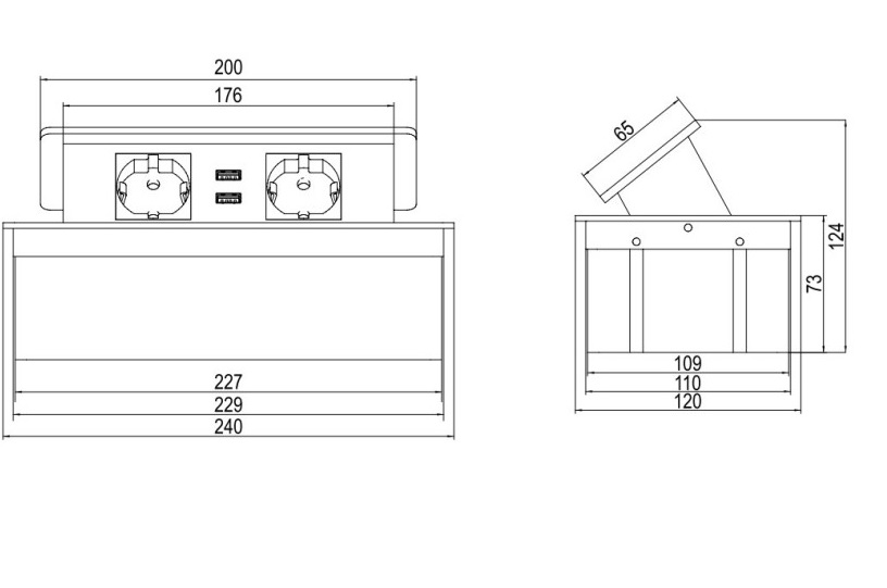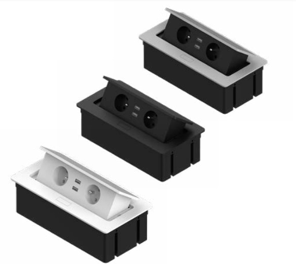 Iefrēzējams rozešu bloks 2 x 230V +2 x USB, Balts