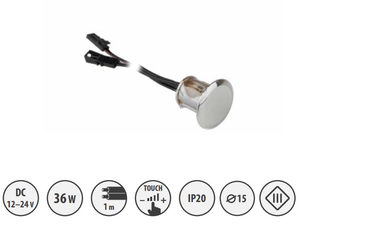 Dimmer skārienslēdzis W03, 12/24V, maks.36W, dia 15, hroms