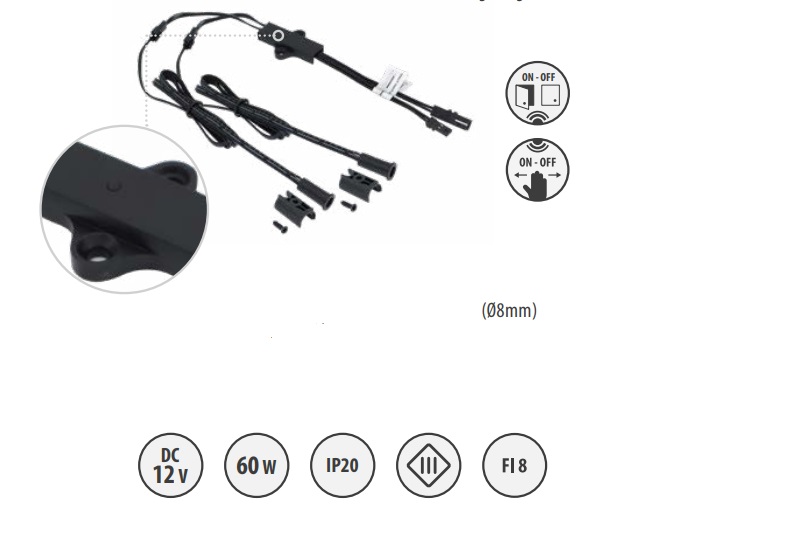 Bezkontakta slēdzis MIKRO IR 12V/36W, 2 sensori, kabeļi 2m un 1,2m, Balts