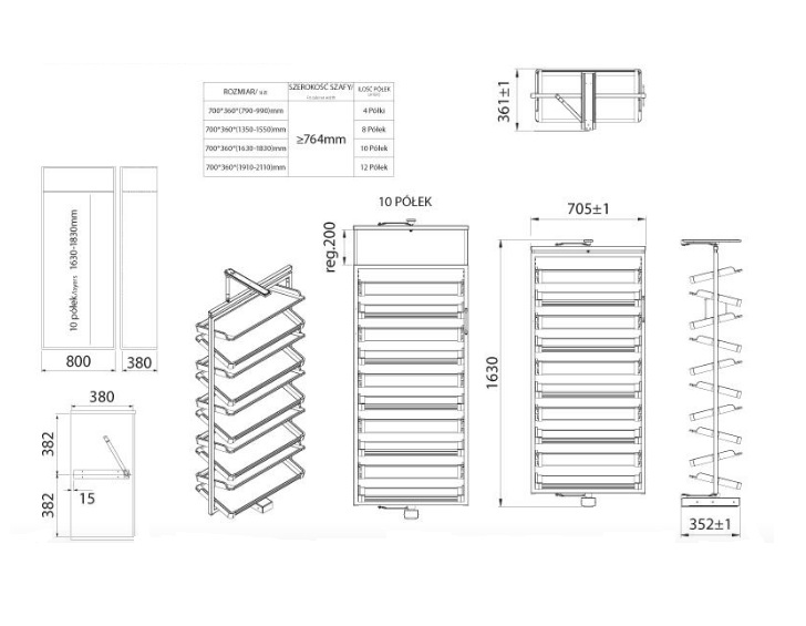 Grozāmais apavu grozs no Symphony sērijas produktiem no slavenā bankomāta zīmola. Grozā ir daudz līmeņu, kuros var ievietot vairākus apavu pārus. Šis risinājums padara WB-671 grozu ārkārtīgi praktisku, pārspējot tradicionālos risinājumus. Katrs līmenis sastāv no izturīga metāla rāmja ar plakanu virsmu apavu novietošanai. Jūsu apavi paliks glīti sakārtoti visos līmeņos, uz visiem laikiem atrisinot jūsu apavu uzglabāšanas problēmu!