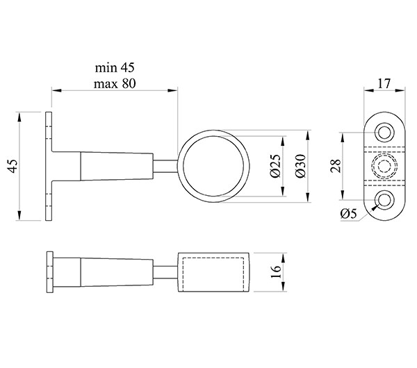 25 mm caurules gala turētājs ar regulāciju