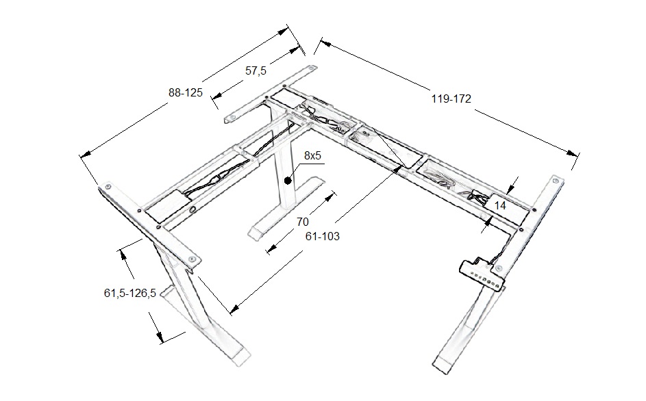 Elektriska augstuma regulēšana 61,5–126,5 cm ar trim motoriem