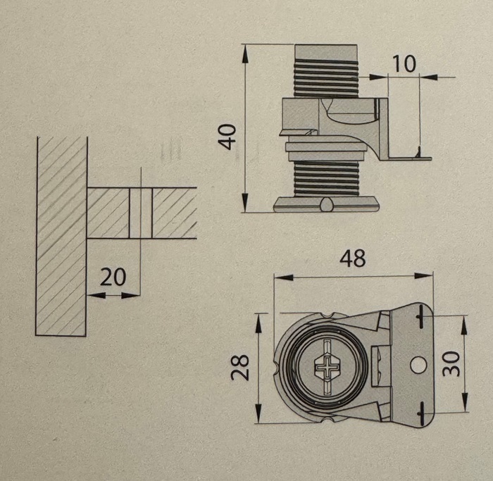 Regulējama kājiņa, H 42 mm