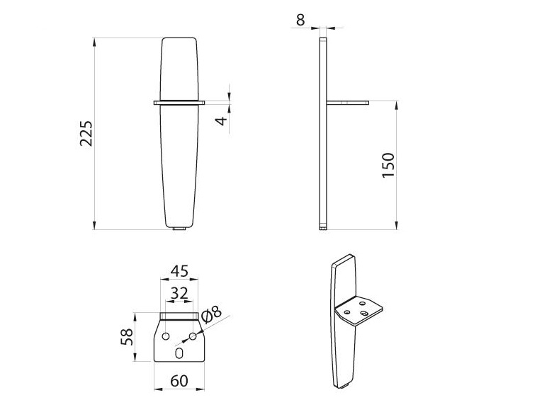 Mēbeļu kāja DN-715 H150 , Melna