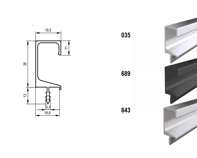 Iefrēzējams C veida rokturis FE3 L-3010 mm Melns mat