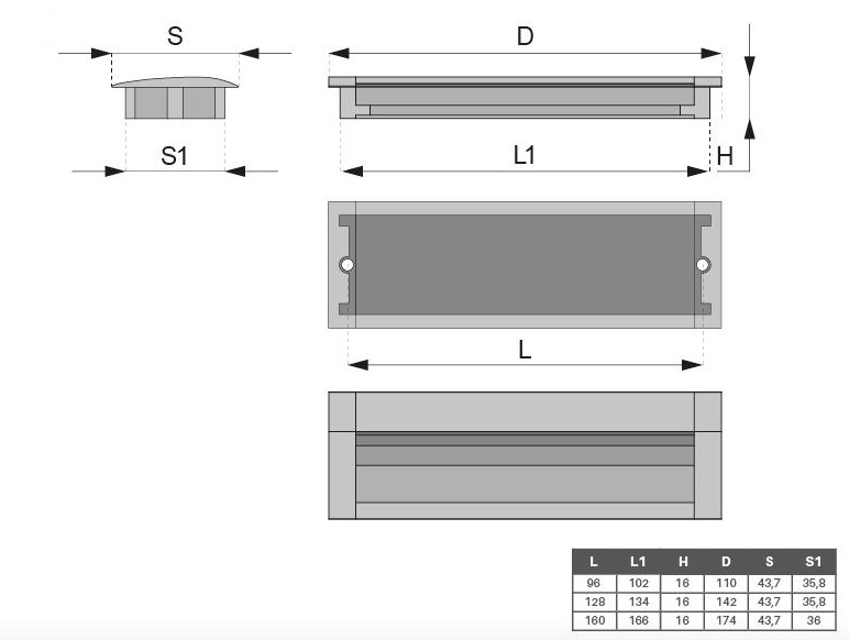 Iefrēzējams rokturis 128 mm UM-010, Alumīnija