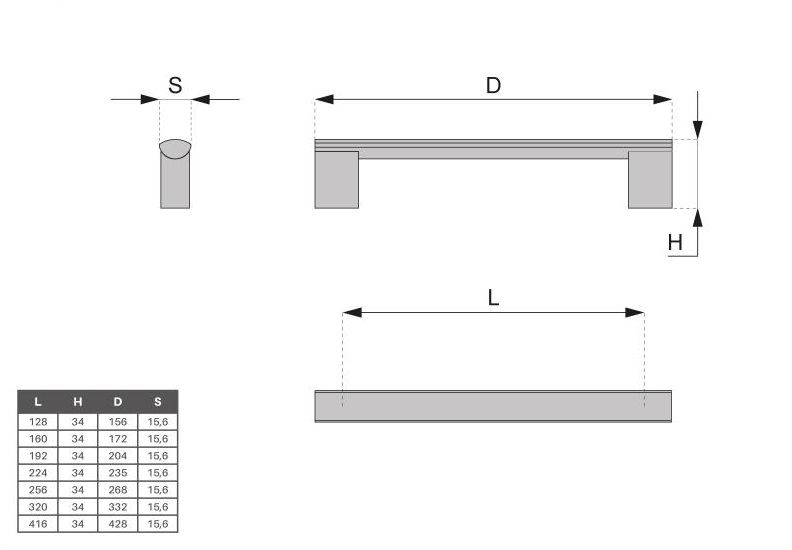 Rokturis UM-015 L-416 - 428x15x34 mm, Alumīnija