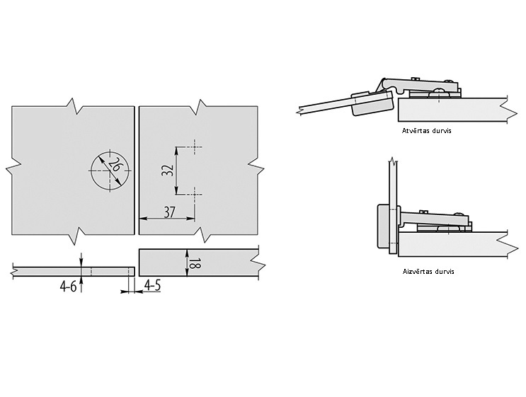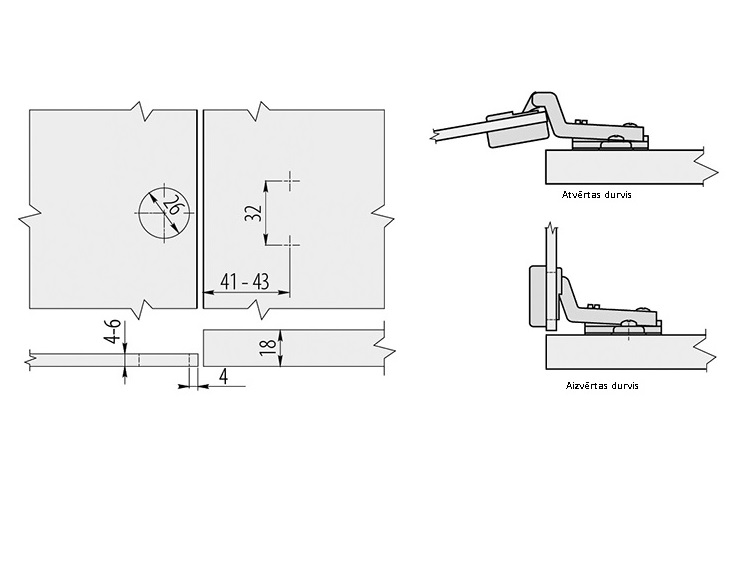 Šarnīrv.stikla Ø26 (2 gab), Hromētas