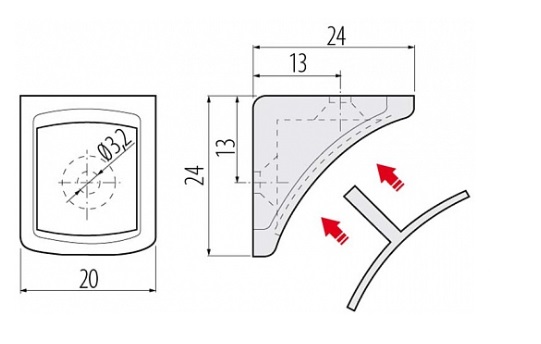 Plastmasas leņķis 20mm, melns