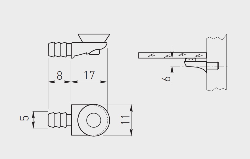 Plaukta balsti stiklam d5*9/17 zn E011