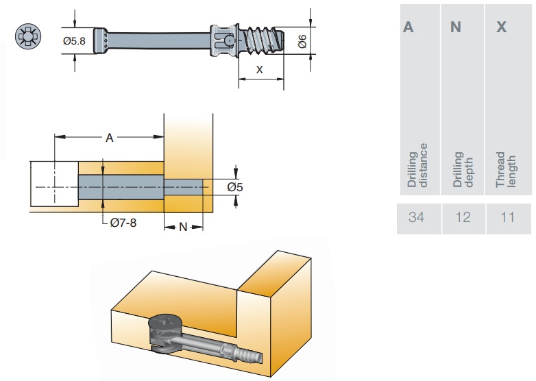 Ekscentra savilcējskrūve Combi Ø5x34mm