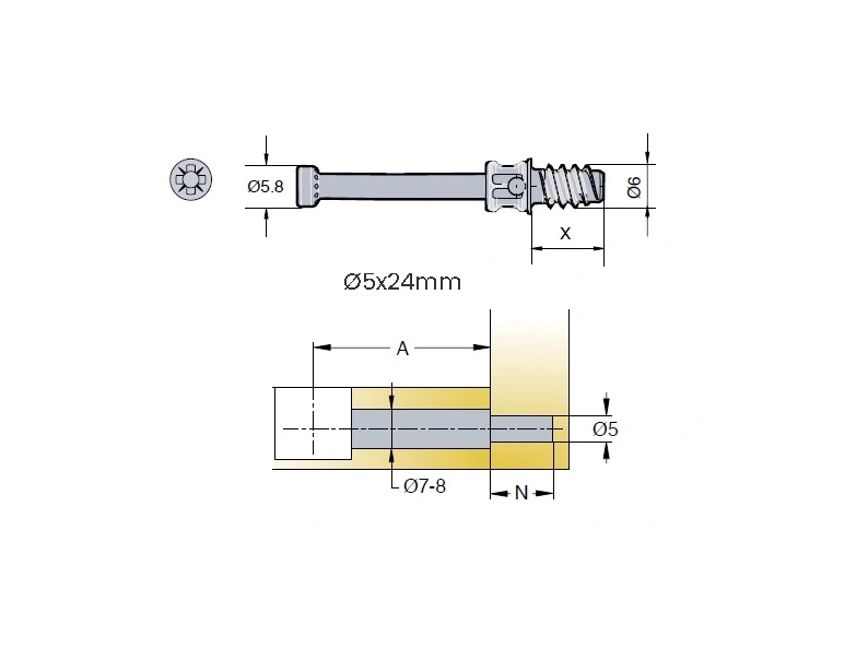 Ekscentra savilcējskrūve Combi Ø5x24mm