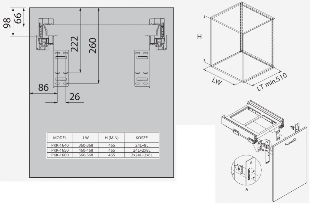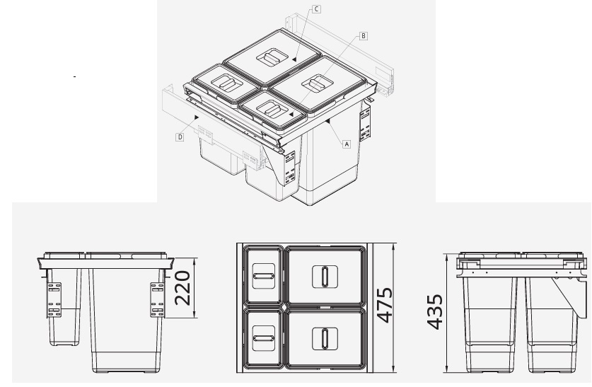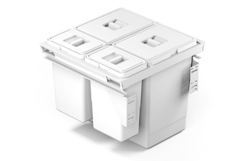 Atkritumu tvertne ir risinājums, kas paredzēts pilnīgai lietotāja ērtībai un maksimālai vietas izmantošanai FUTURA atvilktnēs. Pateicoties precīzajai piegulšanai, tvertne lieliski iederas atvilktnē, nodrošinot stabilitāti un bez brīvkustības. Jūs varat būt pārliecināti, ka jūsu atkritumu šķirošanas sistēma vienmēr būs savā vietā, un piekļuve tai būs ātra un bez problēmām.