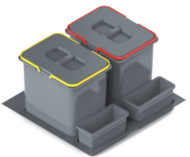 Atkritumu tvertnes PRAKTIKO komplekts 600mm korp.,H300, 2x15L pelēks